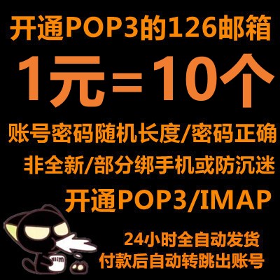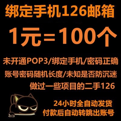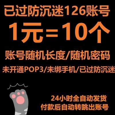 已过防沉迷/未绑手机的126邮箱----二手账号/账号随机长度/密码随机长度/未开通POP3/未绑手机/已过防沉迷(不包能登上邮箱和风险提示