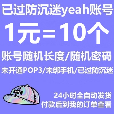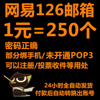 温馨提示:本店出售的所有账号仅用于游戏,收信件,注册类等用途,不能用于发信功能。如果用于非常重要用途(比如绑定资金账号)一定要买能修改密码的账号修改了密码等信息或购买删档的账号使用,否则不建议购买