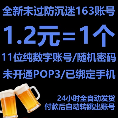 全新11位纯数字带授权码163账号--------单独佣有/未过防沉迷/全新邮箱号/随机密码/11位纯数字账号/已绑手机/已开通POP3带授权码/死绑无法改密